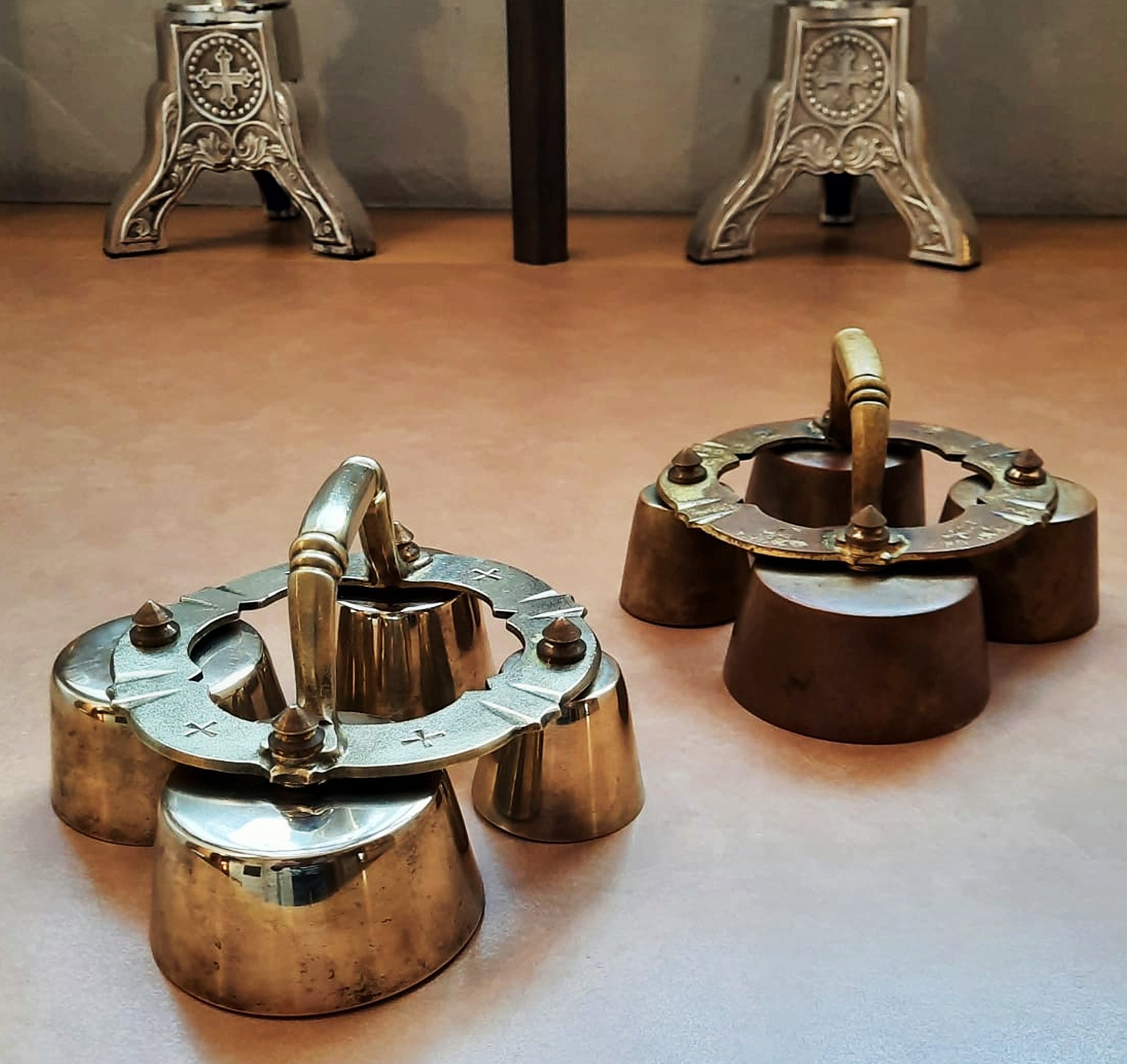Messner Thomas Bertlwieser hat zu Beginn der Fastenzeit sich der Schellen und Glocken in der Pfarrkirche St. Jakobus und in der Klosterkirche angenommen. Sie sehen jetzt wieder blitzeblank aus. Hoffentlich klingen sie auch so schön. (Fotos: Thomas Bertlwieser)