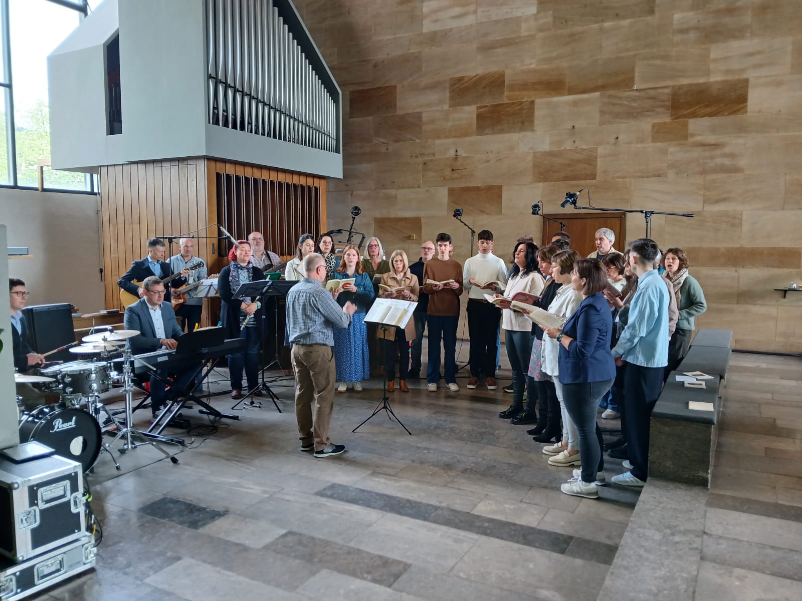 Pfarrer Jan Kölbel eröffnete den Gottesdienst auch gleich mit einem kleinen, aber auch nachdenklich stimmenden Witz. Ostern – ist das nicht das Fest, an dem der Osterhase gestorben ist? Leider gebe es zunehmend junge Menschen, denen die wahre Bedeutung des Osterfestes unklar sei. Aber nicht so den Kindern, die den Gottesdienst besuchten. Sie wurden eingeladen, sich die große Osterkerze in der Mitte des Altarraumes zu betrachten und entschlüsselten sofort die dargestellte Symbolik. Mit Jesus Christus wurde der Tod überwunden. Er ist auferstanden. Doch was bedeutet dies? „Stellt euch vor, es ist Ostern und die Engel im Himmel unterhalten sich, was zu tun sei“, so Pfarrer Kölbel zu den Kindern. Und so durften die Kirchenbesucher der Unterhaltung dreier Engel lauschen. Die zentrale Frage der Engel lautete: „Wie bringen wir den Menschen bei, dass Jesus auferstanden ist?“ Vielleicht mit Pauken und Trompeten und allen himmlischen Heerscharen? Oh nein, die Menschen sollen es selbst merken, beispielsweise durch das leere Grab und das zurückgelassene Schweißtuch. Doch da lagen die Engel falsch. Maria von Magdala, die als erstes an das leere Grab kommt, versteht es nicht. Erst als Jesus ihr persönlich erscheint und sie bei ihrem Namen nennt, beginnt sie, die Auferstehung Jesu zu begreifen. Auch uns heutigen Menschen, fast 2000 Jahre danach, mag dies schwer fallen. Wir hätten vielleicht auch gerne handfeste Beweise, am besten Beweise direkt aus dem Jenseits und sind doch zurückgeworfen auf das Vertrauen und das Glauben. Und dieses Vertrauen durften die Gottesdienstbesucher auch in den begeisternden und mitreißenden musikalischen Darbietungen der Singgruppe unter der Leitung von Paul Platz spüren. Und zu guter Letzt erwachte sogar die Osterkerze zu echtem Leben und ließ die Kirchengemeinde wissen, dass es ihre ganz wichtige Aufgabe sei, davon zu erzählen, dass Jesus von den Toten auferstanden sei, dass er das Licht der Welt ist. Sie dürfe uns jetzt ein ganzes Jahr lang daran erinnern, wie sehr Gott uns liebt und dass wir alle dazu beitragen können, dass das Leben hell und schön wird, dass auch wir zu Lichtern werden dürfen, die leuchten und anderen gut tun. Welch schöne Botschaft zum Abschluss des Gottesdienstes, der mit dem Ostersegen und einem Gebet für den an diesem Morgen verstorbenen Papst Franziskus endete in der Hoffnung auf die Auferstehung.