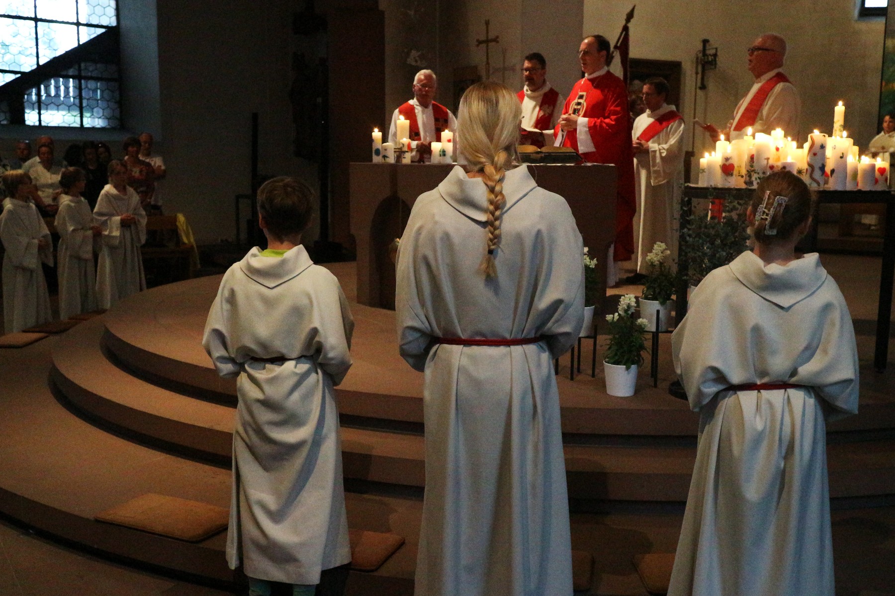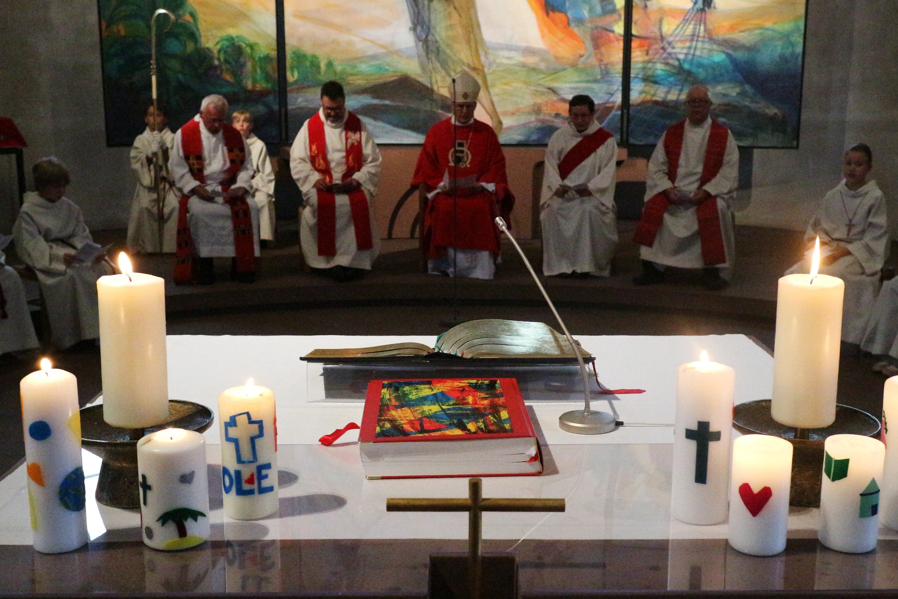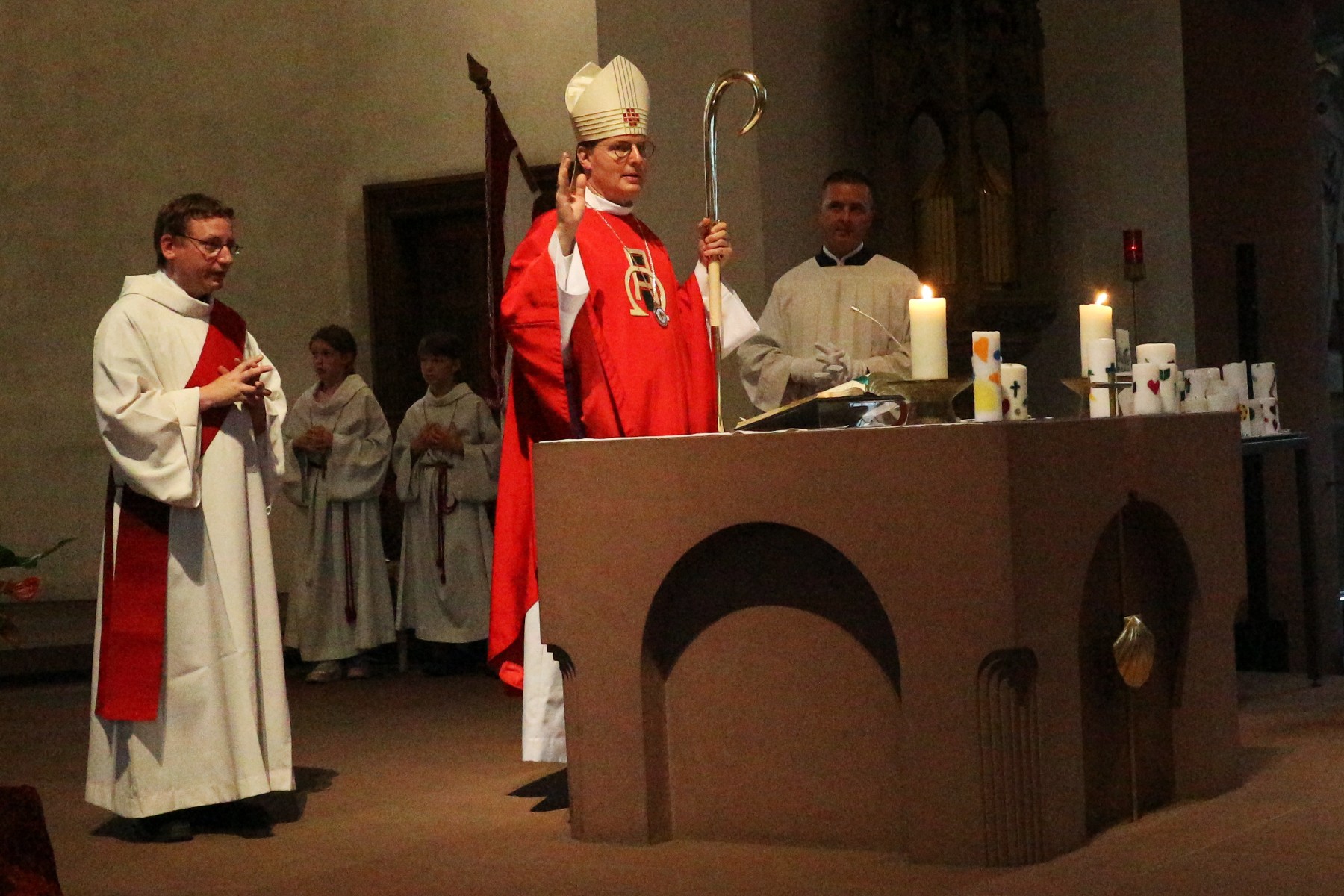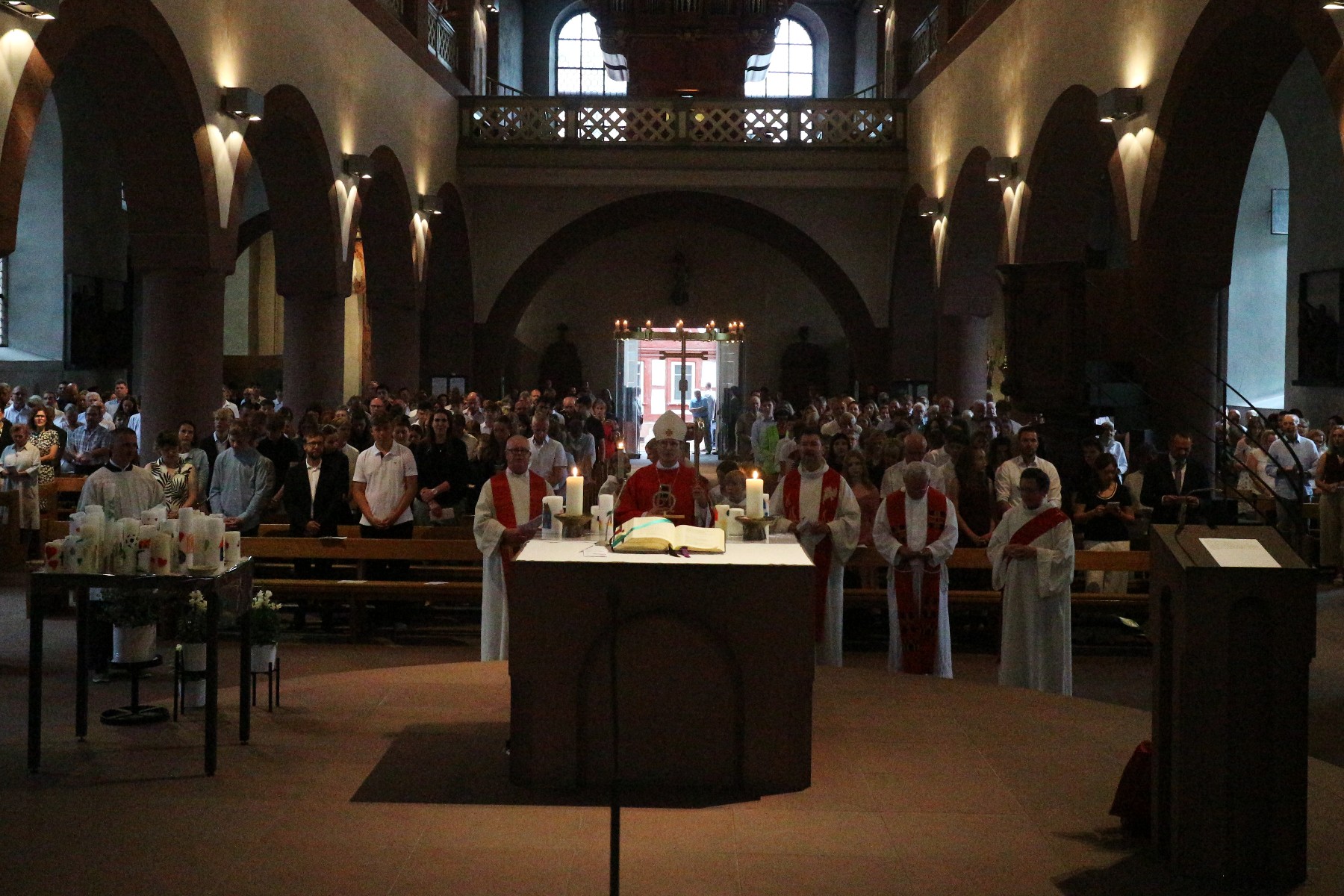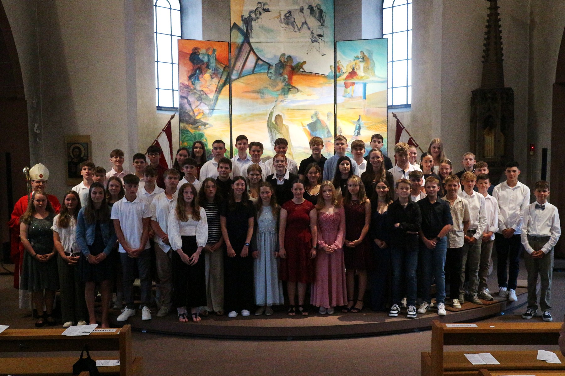 Zum Gottesdienst haben sich die Firmlinge aus den Pfarreiengemeinschaften Eichenbühl und Miltenberg/Bürgstadt am Freitag, den 27.06.25 versammelt. Unterstützung erhielten sie von ihren Familienangehörigen, Freunden und Bekannten. Nachdem Pfarrer Jan Kölbel Weihbischof Paul im Namen aller begrüßte, begann die Messfeier mit dem Kreuzzeichen. Musikalisch wurde die Feier vom Gesang der Gemeinde, der Band „Terikto“ und Organist Markus Heinrich getragen. In der Predigt ermutigte Weihbischof Paul die Firmlinge auf ihrem Lebensweg einmal zu einem „echten Original“ zu werden. Keine Kopie von einem anderen oder das Produkt einer künstlichen Idee. Gott schenkt ihnen seinen Heiligen Geist, seine Vertrauenskraft, damit sie JA sagen können: Zu sich selber, zum Leben und zum Glauben. Eingangs fragte Weihbischof Paul, ob die Anwesenden wohl nach dem Gottesdienst „belebt“ zum Alltag zurückkehren würden. Die Antwort kann mit einem kräftigen JA beantwortet werden. Den Firmlingen wünschen wir stets ein lebendiges JA zu ihrem Leben! Vielen Dank allen für die Unterstützung unserer jungen Mitchristen auf ihrem bisherigen Werg und für die Begleitung in der kommenden Zeit. Herzliches Vergelt’s Gott den Messnern, der Lektorin und den Ministranten für ihren Dienst. Möge die Freude der Firmlinge lange anhalten. Hier die Fürbitten der Firmlinge während der Messfeier. (Fotos: u.a. Thomas Bertlwieser)