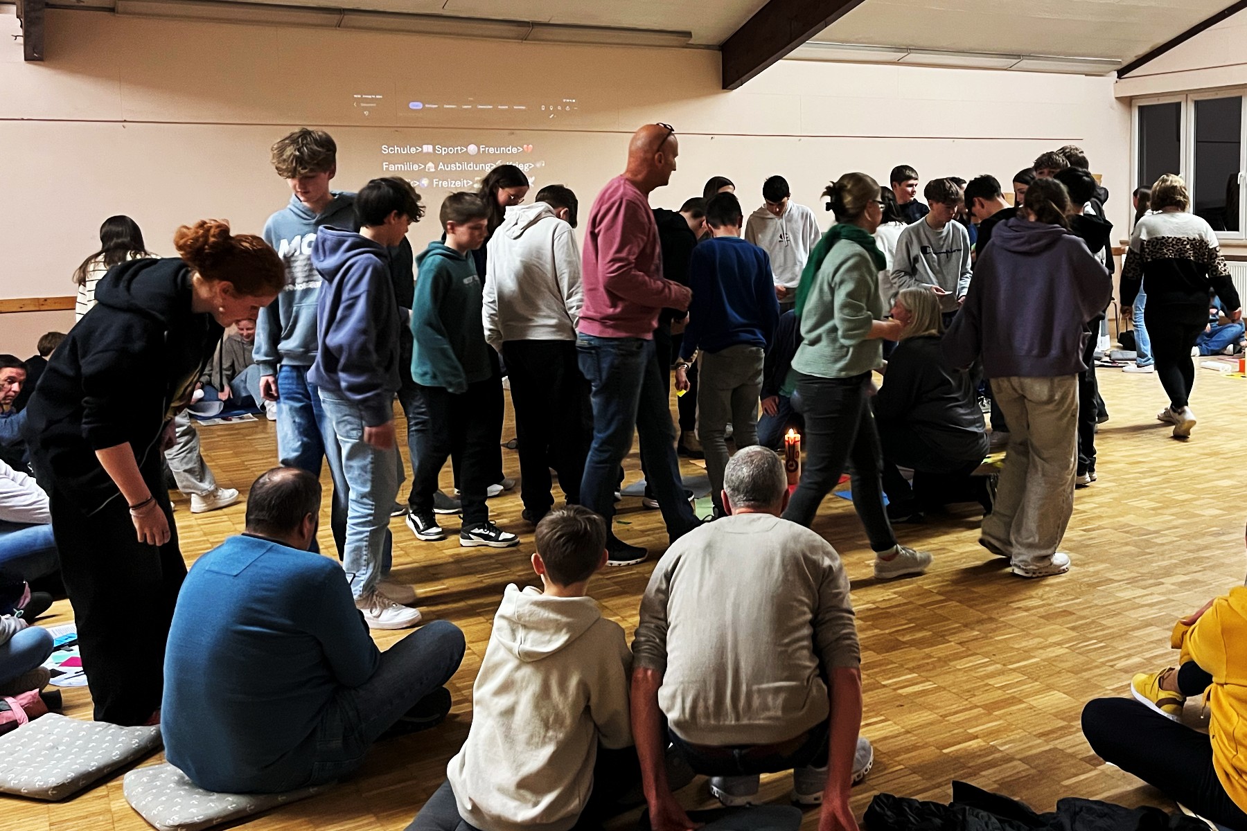 An diesem ersten Treffen stand die Kerze im Mittelpunkt. Zunächst wurde gemeinsam erörtert, was Jugendliche zurzeit beschäftigt. Was sind denn ihre Themen? Was ist ihnen wichtig? Die Antworten lauteten: Schule, Sport, Freunde, Familie, Ausbildung, Krieg, Politik, Freizeit, Frieden und Musik.