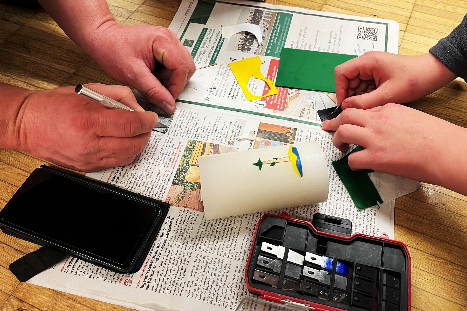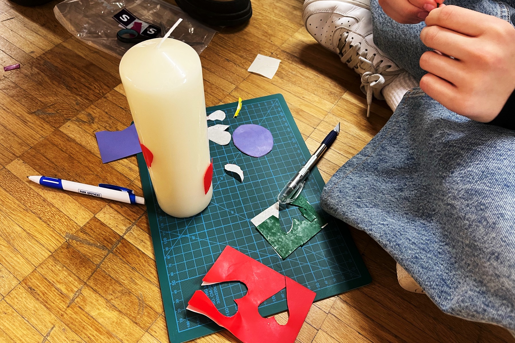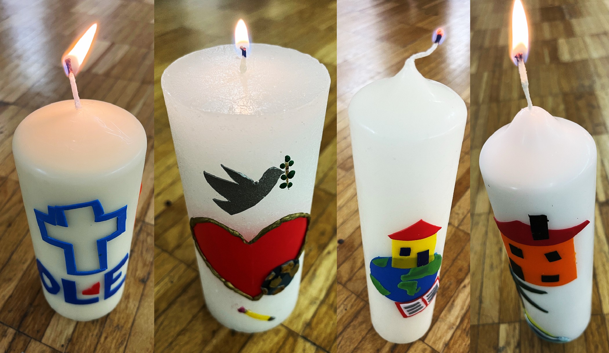 Mit diesen Ergebnissen kamen die „Pärchen“ ins Gespräch. Dann entschieden sie sich für drei dieser Themen und gestalteten diese Auswahl auf ihre Kerze.