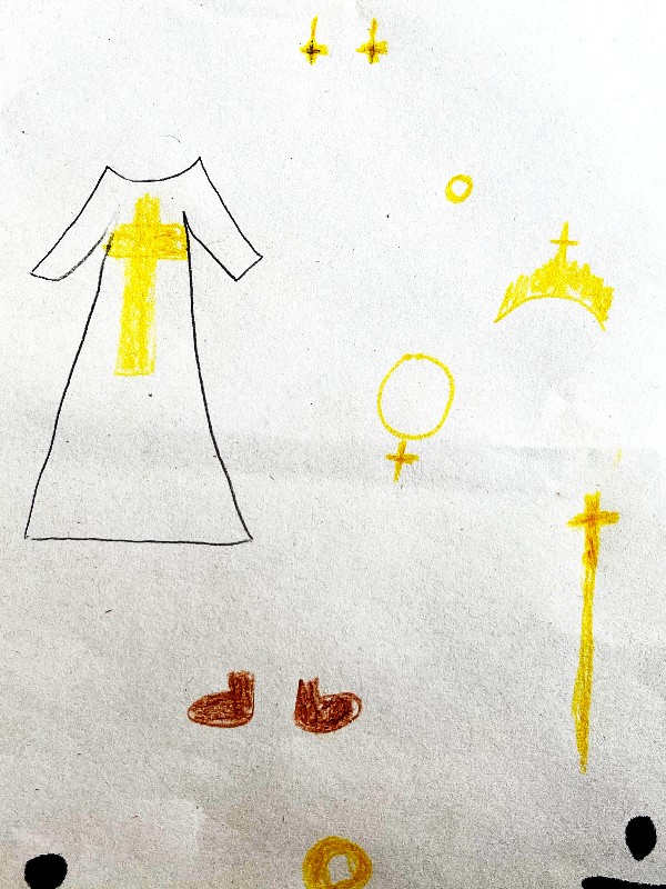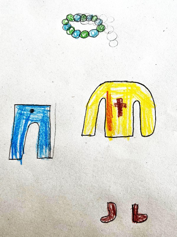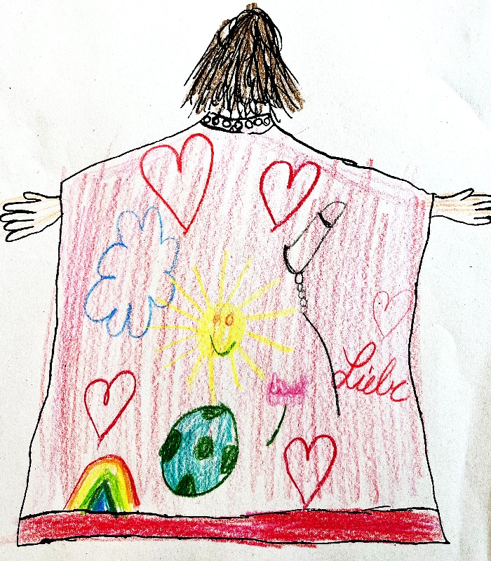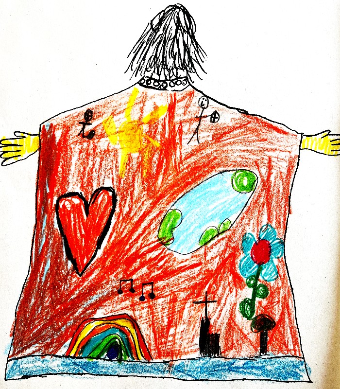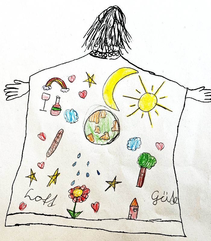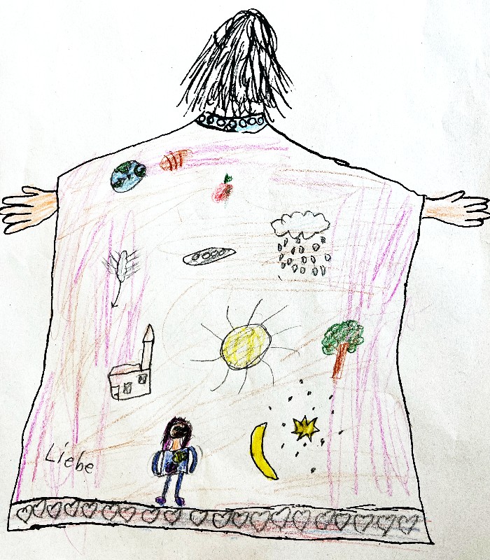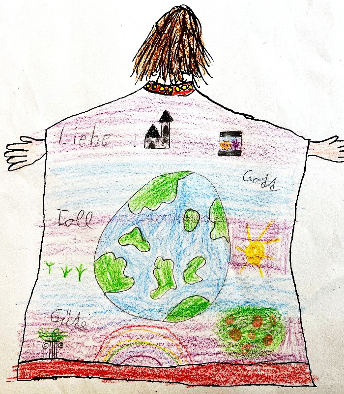 Ganz wichtig: Was trägt Gott? Welchen Modegeschmack hat er? Die Kinder beantworten diese Fragen auf kreativer und "modischer" Art. Sie haben Gott neue Kleider, Hosen, Jacken, Gürtel, Hut und auch Schmuck entworfen. Bei einem sind sich die Kinder einig: Gott sollte auf jeden richtig gut aussehen. Im Blick auf den den Herbst/Winter: Ein toller Mantel darf natürlich nicht im Kleiderschrank Gottes fehlen.