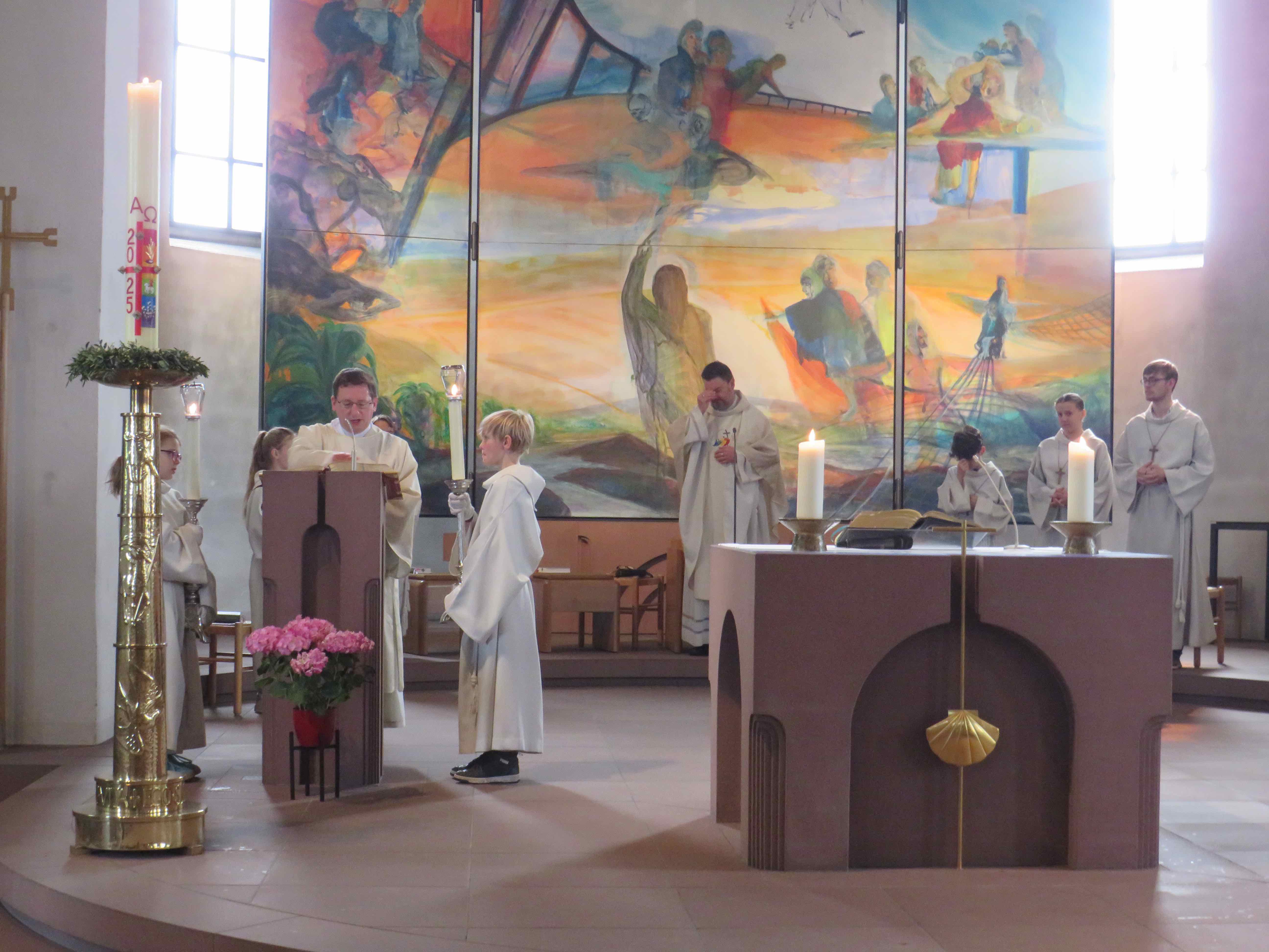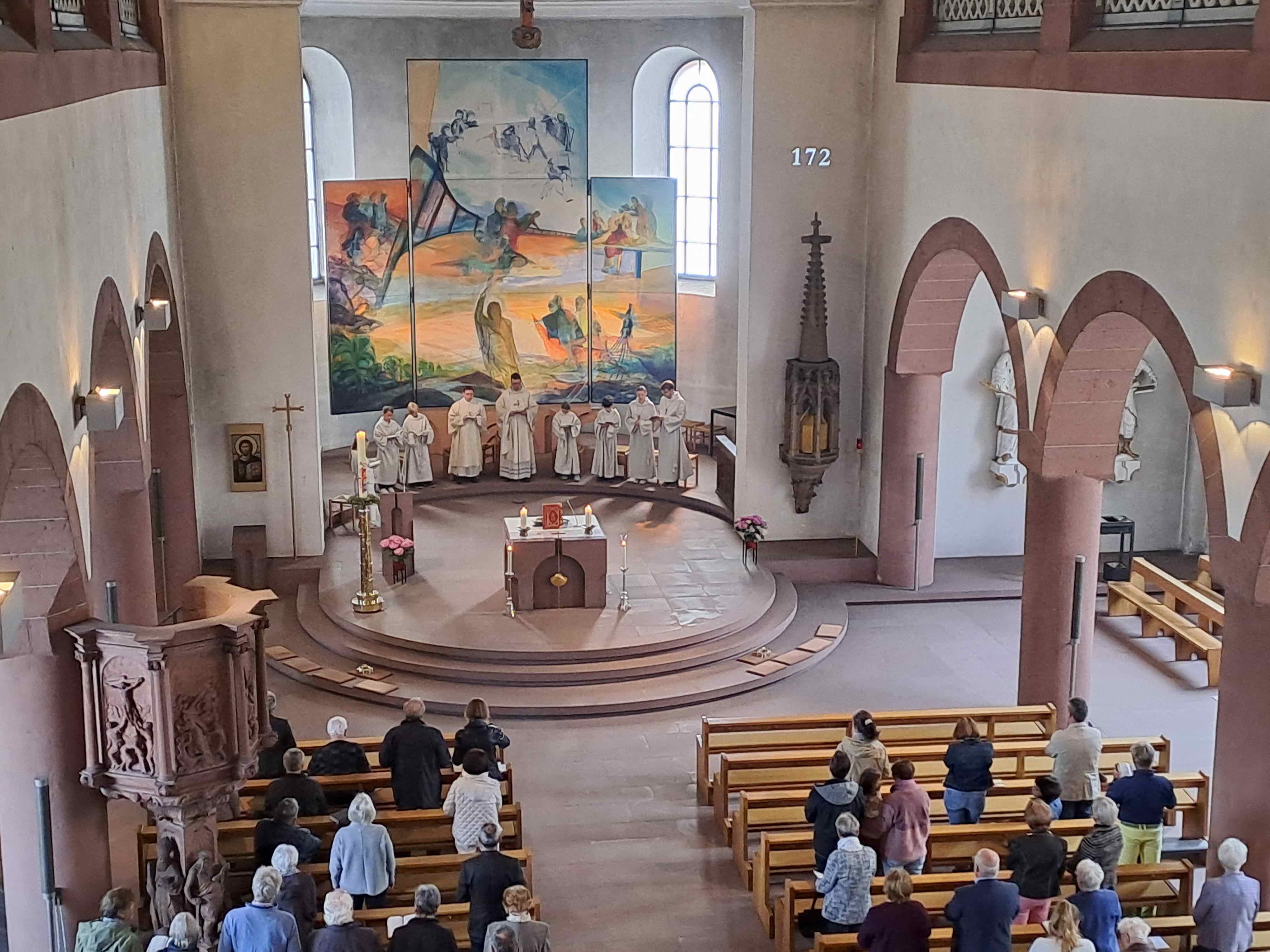Die Jünger Jesu, also die junge Kirche, hätten auf den auferstandenen Christus geblickt, während er in den Himmel aufgefahren sei. Dies hätten wir heute in der ersten Lesung (Apg 1,9-10) gehört. Darin heißt es: „(…) und eine Wolke nahm in auf und entzog ihn ihren Blicken. Während sie unverwandt ihm nach zum Himmel emporschauten (…)“. Uns als Kirche stehe es gut an, auf Jesus Christus zu blicken, denn in ihm seien wir alle eins.