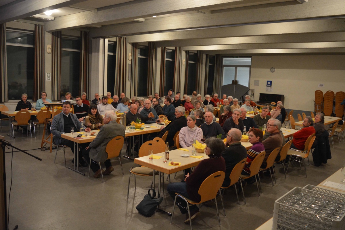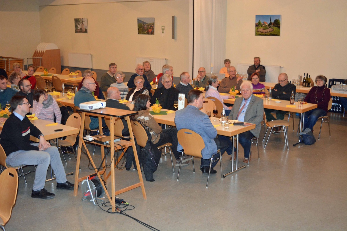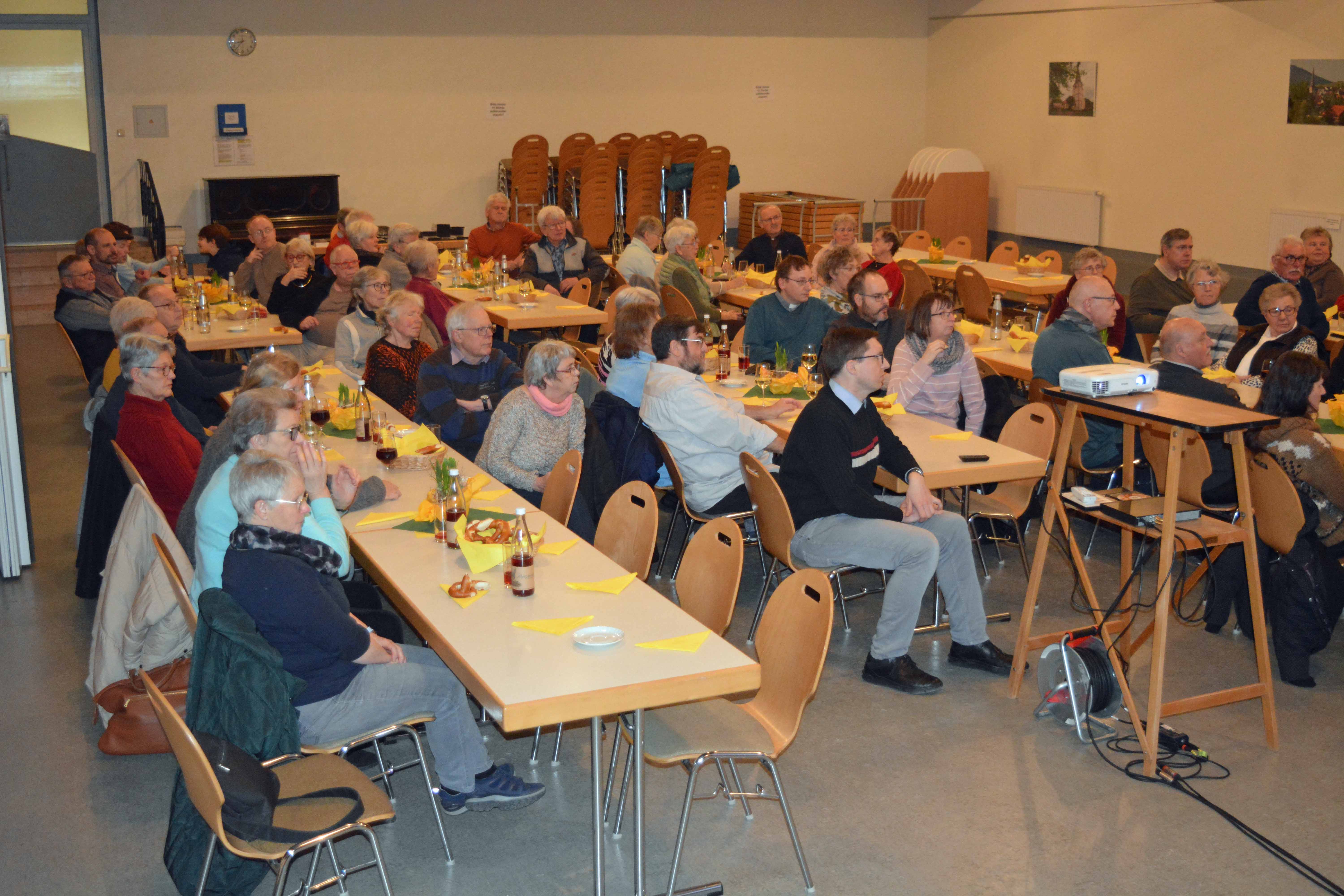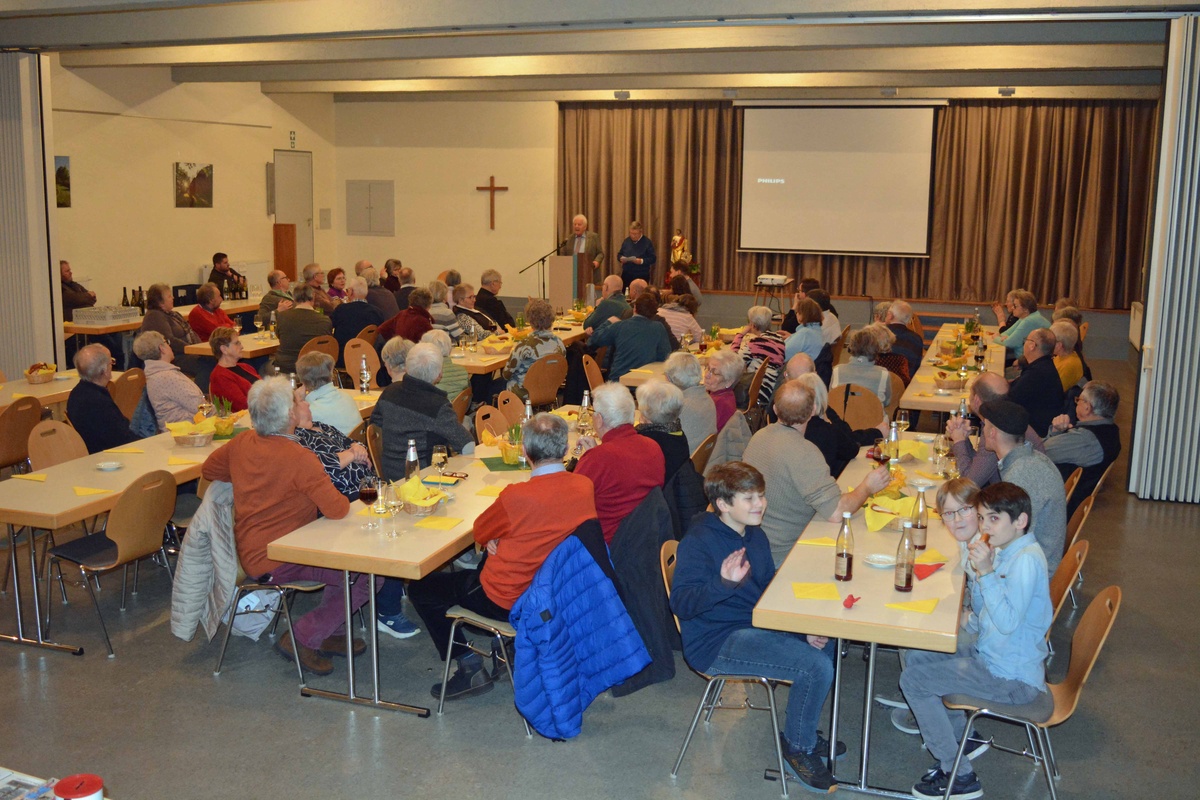 Im Anschluss an den Gottesdienst begrüßte der Brudermeister die Gäste der Bruderversammlung im Pfarrsaal. Willibald Schmalbach berichtete vom Kassenstand. Bei Wein und Bretzel gab es dann Gelegenheit, den Film von Larissa Anton über Brauchtum im Odenwald zu sehen, der auch Aufnahmen aus Bürgstadt, z.B. von der Martinskapelle und von der Urbanusprozession 2025 enthielt.