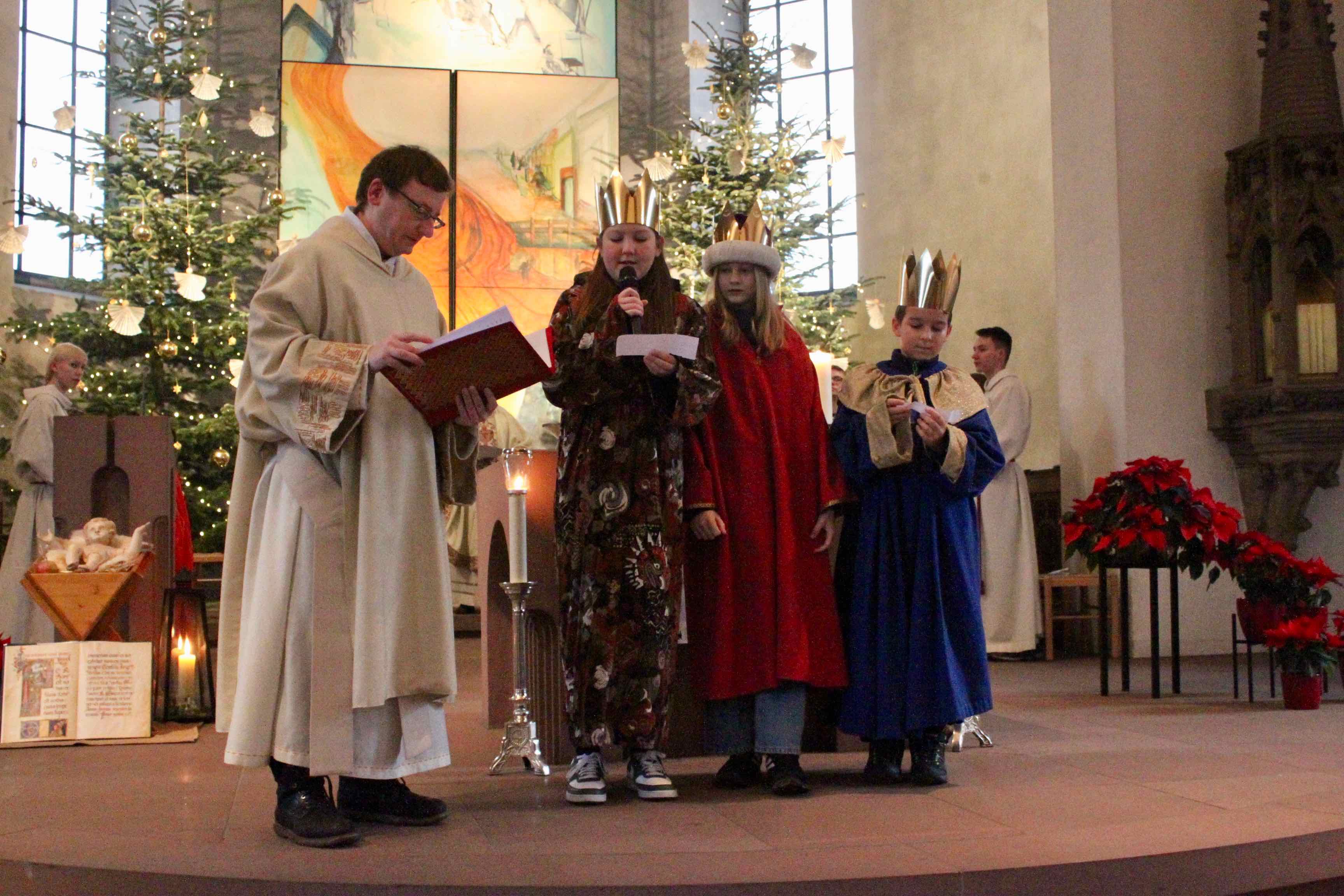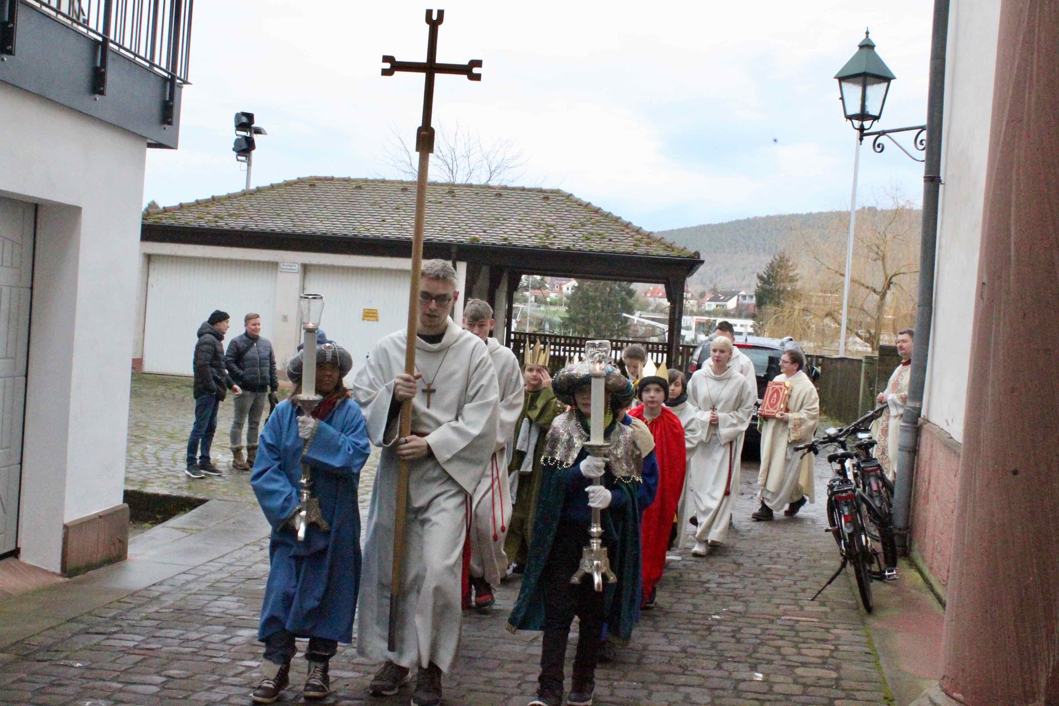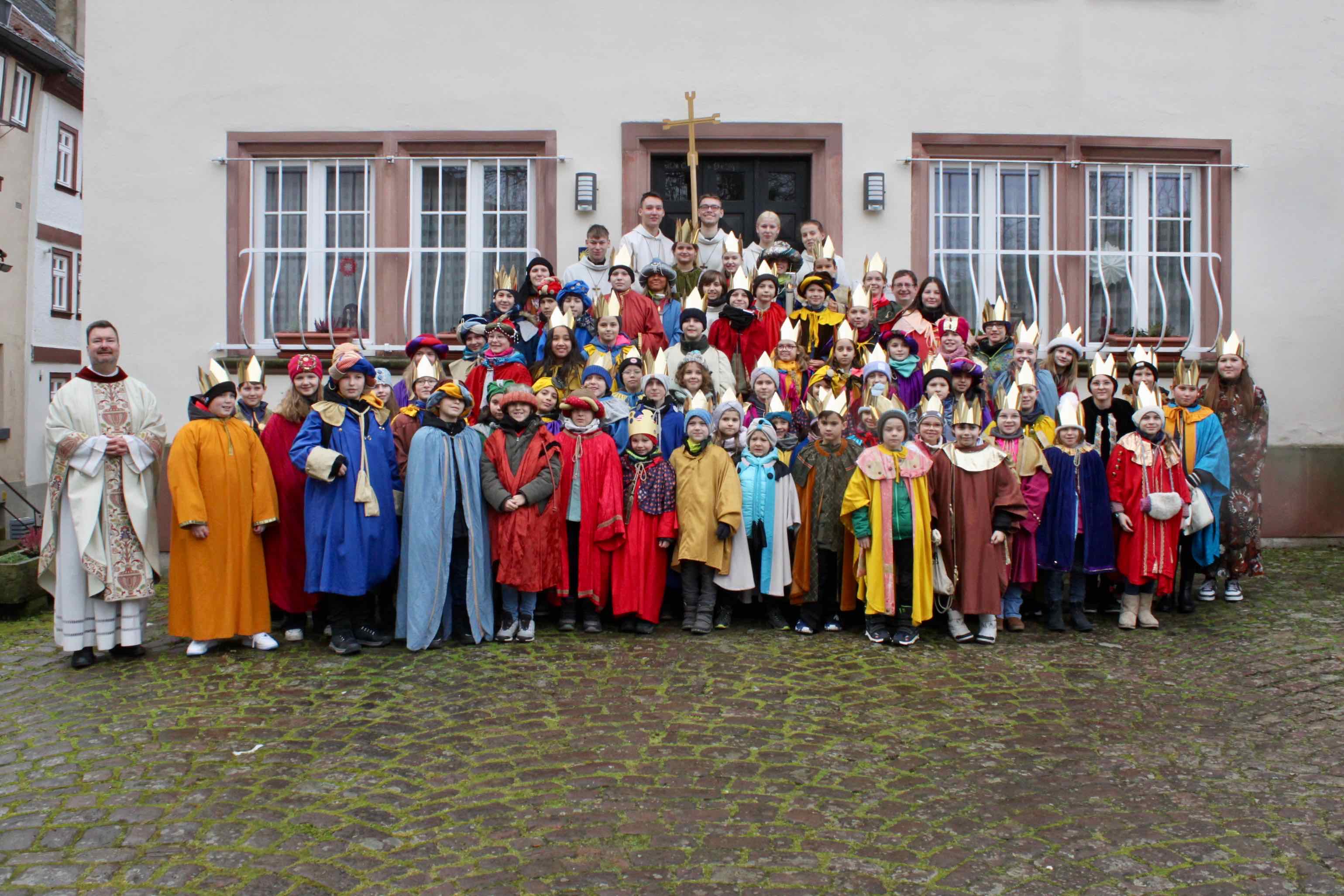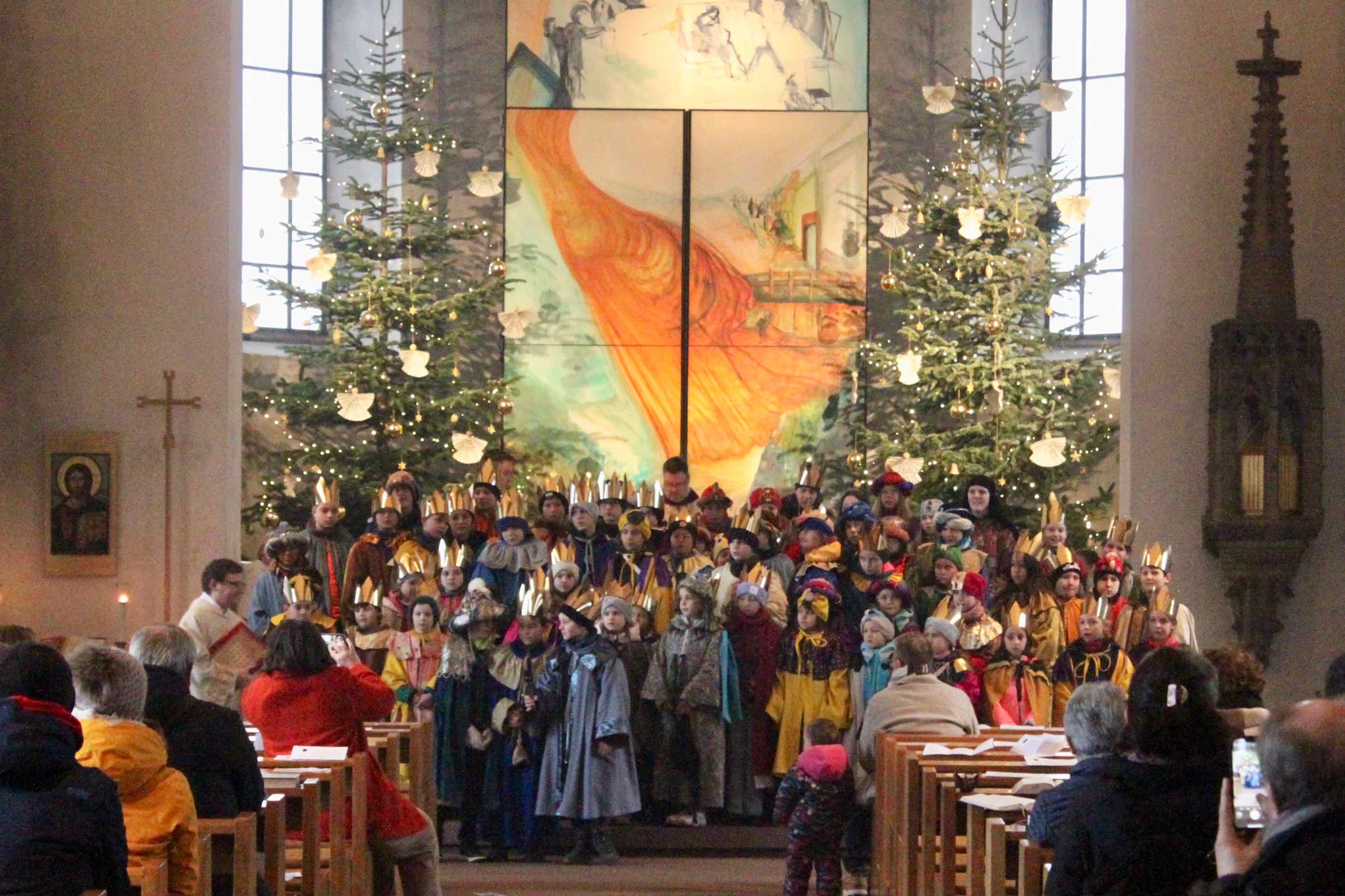 Die Sternsingeraktion sei doppelt ökumenisch, weil neben den katholischen auch evangelische und Kinder aus Bürgstadt dabei seien - viele davon bereits seit einigen Jahren. Angesichts des königlichen Besuchs in der Pfarrkirche wies Diakon Grimm auf das Evangelium hin, wonach das Jesuskind in der Krippe ebenfalls königlichen - oder besser gesagt - hohen Besuch gehabt hätte. Die Sterndeuter, die von weit hergekommen seien, hätten ein kleines Kind in einer Futterkrippe wie einen König behandelt: „Sie gingen in das Haus und sahen das Kind und Maria, seine Mutter; da fielen sie nieder und huldigten ihm “ (Mt 2,11). Dass Jesus als Kind in unsere Welt gekommen ist und er auch uns Kinder Gottes nennt, wurde in den Kyrie-Rufen der Sternsinger deutlich.