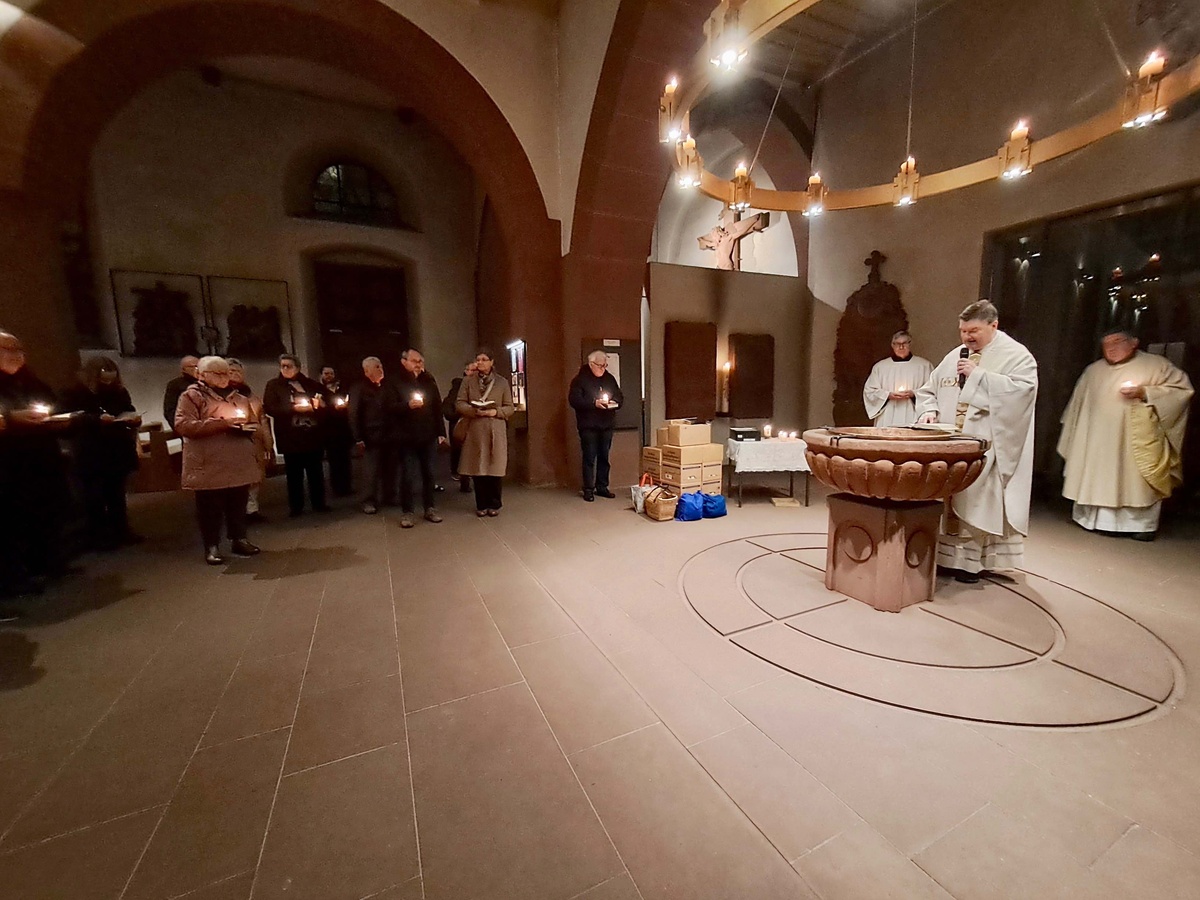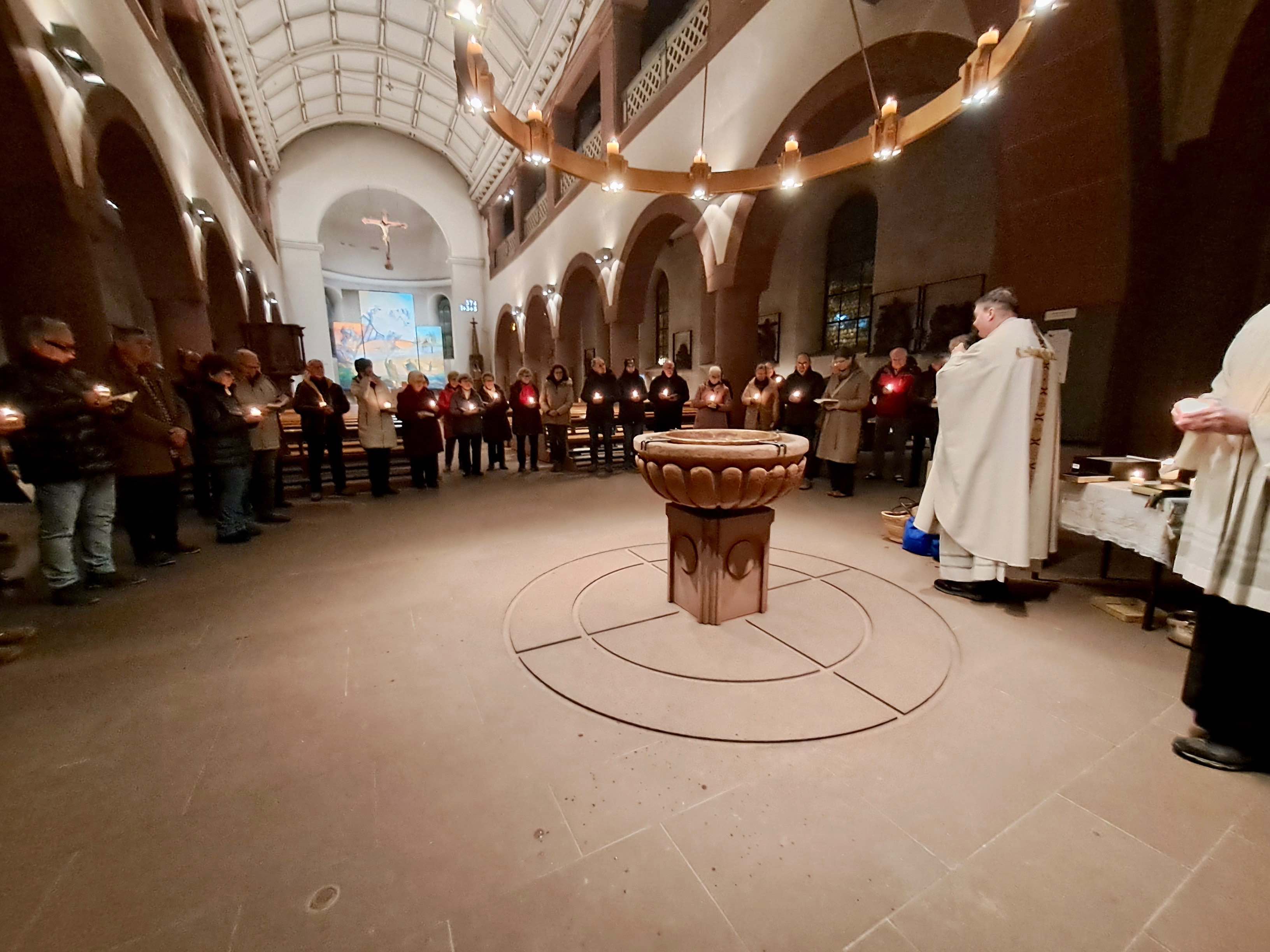 Seit der Geburt Jesu an Weihnachten seien 40 Tage vergangen und Maria und Joseph hätten ihren Sohn an diesem Tag in den Tempel gebracht, um ihn Gott zu weihen. Im Tempel sei Jesus vom greisen Simeon als Licht der Völker gepriesen worden. Jesus habe nicht nur von sich gesagt: „Ich bin das Licht der Welt“, sondern er habe uns zugesprochen: „Ihr seid das Licht der Welt“. Wie Maria und Joseph zum Tempel gezogen seien, wollten wir nach der Kerzensegnung nun in einer kleinen Lichterprozession in die Kirche hineinziehen.