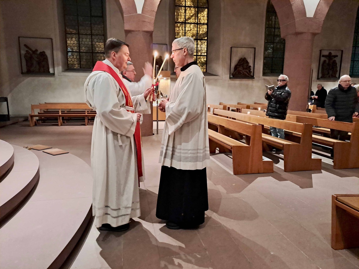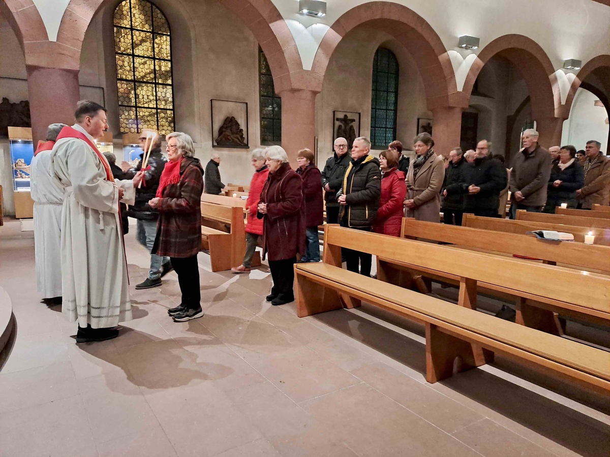 Am Ende des Gottesdienstes dankte Pfarrer Kölbel der Schola Cantorum (Ltg. Michael Bailer) für die festliche, musikalische Gestaltung. Er spendete zunächst den allgemeinen Blasiussegen und mit seinem Konzelebranten Pfarrer Toni Wolf den Blasiussegen als Einzelsegen zum Schutz vor Halskrankheiten.