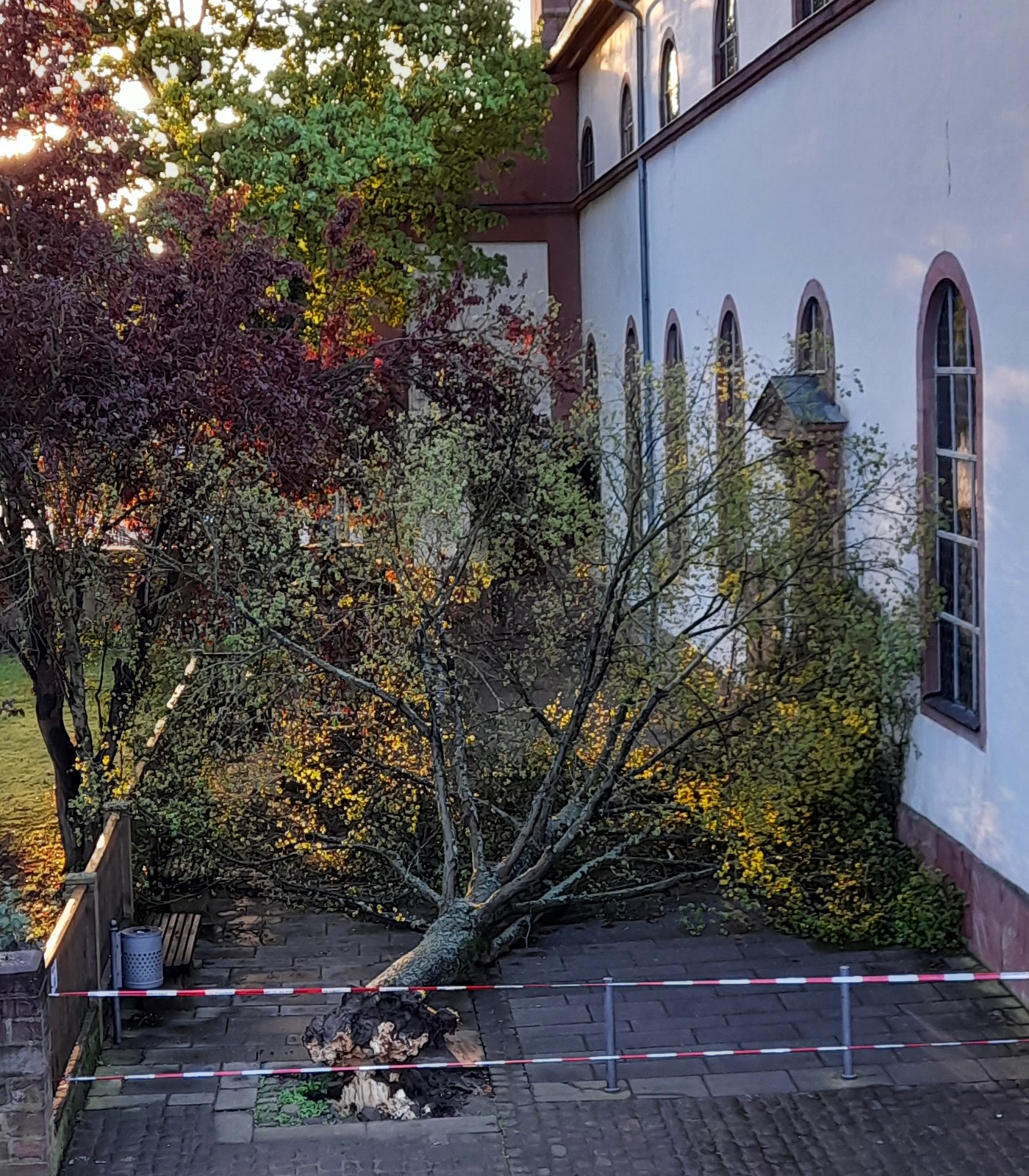 Der schwere Sturm am Abend des 15. April war zuviel für die alte Linde an St. Jakobus. Ohne großes Getöse fiel sie einfach um. Wie sich herausstellte, war sie innerlich morsch gewesen, was man ihr von außen nicht ansehen konnte. Gott sei Dank war bei dem Sturm niemand unterwegs. Der alte Baum war zudem so höflich, exakt so zu fallen, dass weder die Kirche noch der Pfarrgarten beschädigt wurden. Die Kirchenlinde wird uns fehlen! Aber es ist bei Bäumen halt wie bei den Menschen: Wie es innen ist, sieht man von außen oft nicht.