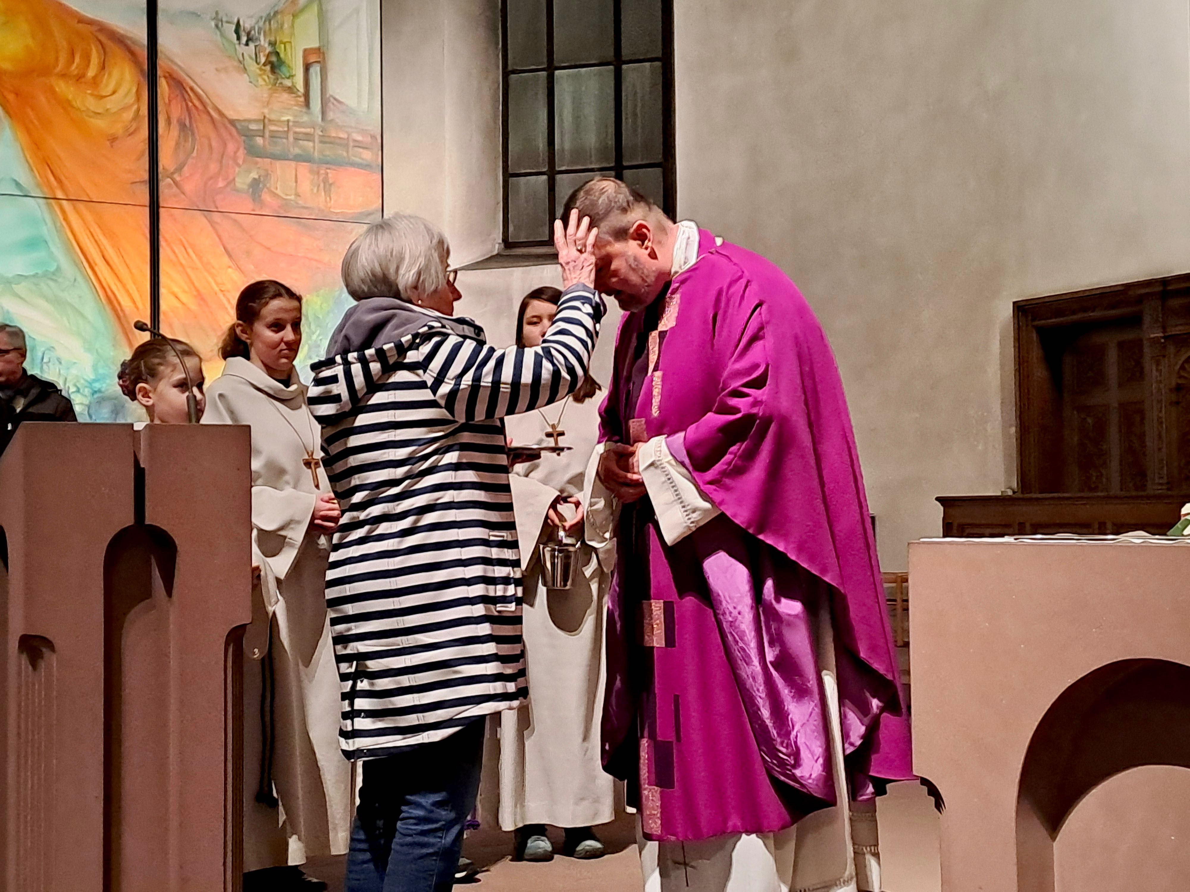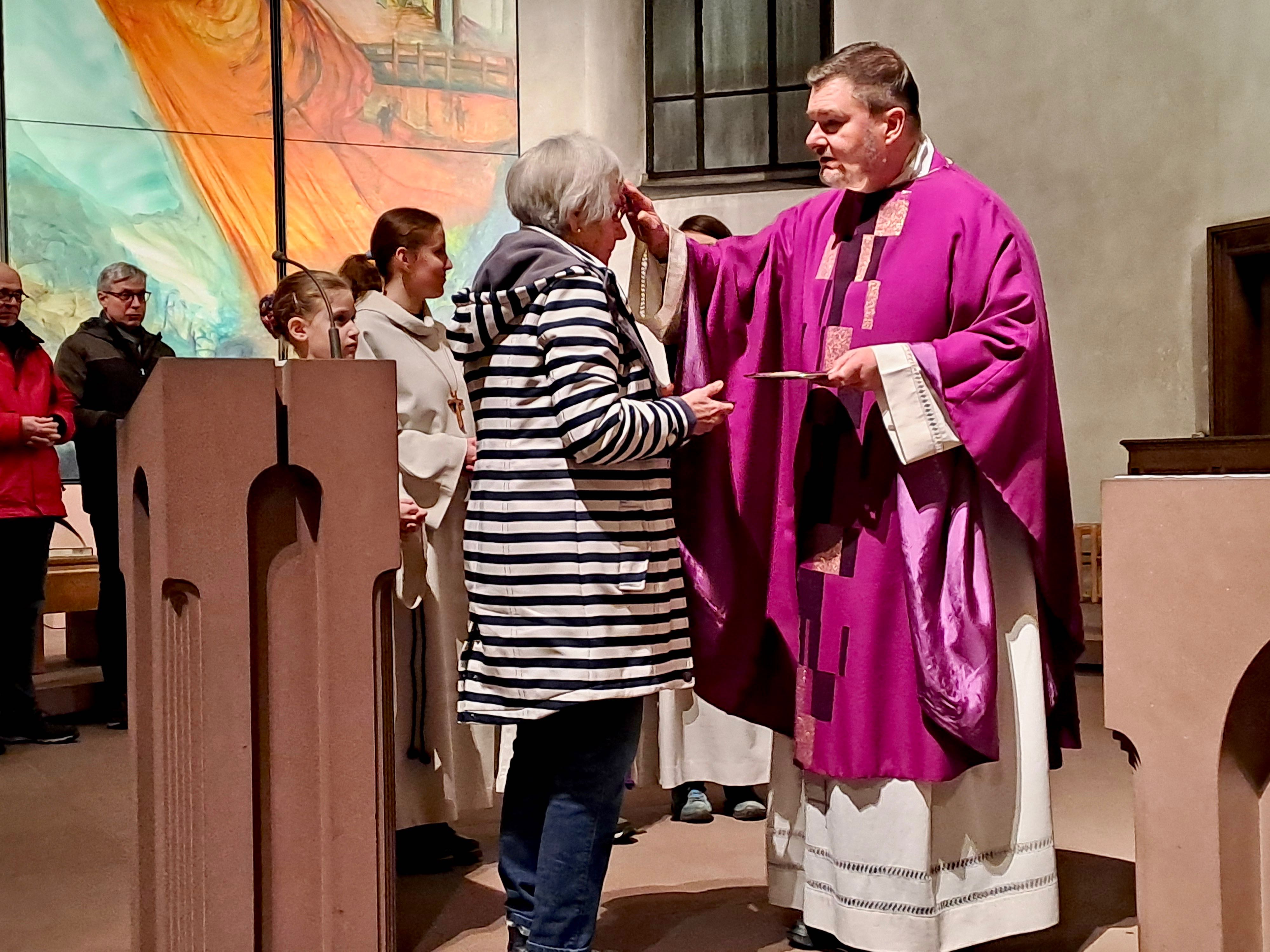 In seiner Predigt ging Pfarrer Kölbel auf die jüngsten Ereignisse im Weißen Haus ein. Er verwies darauf, dass es aus seiner Sicht kein Zeichen von Stärke, sondern eher ein Zeichen von Schwäche sei, einen Schwächeren vorzuführen und öffentlich zu demütigen. Eine starke Persönlichkeit müsse ihren Wert nicht durch solch fiese Spielchen beweisen – sie zeichne sich vielmehr dadurch aus, dass sie ihr Gegenüber auch im Konflikt respektiere und dafür sorge, dass der andere, auch wenn er nachgeben müsse, nicht sein Gesicht verliere. Was für einen einzelnen Menschen gelte, gelte ebenso für eine ganze Gesellschaft. Die Erfahrung zeige, dass die selbsternannten Heilsbringer mit ihren vermeintlich einfachen Lösungen die Lage langfristig fast immer nur verschlimmerten. Eine stabile Gesellschaft zeichne sich dadurch aus, dass sie Krisen gemeinsam meistere und nicht den scheinbar einfachen Weg wähle. Ein reifer Mensch blicke auf seine eigenen Defizite und nehme sich selbst nicht übertrieben wichtig. Damit seien wir bei der Fastenzeit. Diese begännen wir nicht mit Angriffen auf andere, sondern dadurch, dass wir uns selbst Asche auf das Haupt streuen ließen als Zeichen unserer Unvollkommenheit und Umkehrbereitschaft. Wir seien eingeladen, unsere Schwächen in den Blick zu nehmen und an uns zu arbeiten. Dabei sollten wir unser Herz für die Schwachen und Notleidenden öffnen. Die kommenden 40 Tage seien eine Trainingszeit, die uns stark machen wolle; dies immer in dem Bewusstsein, dass es um keine gespielte Stärke, sondern um echte Stärke gehe, die für andere heilsam sei und sich aus dem Glauben speise, dass Gott uns trotz unserer Fehler liebe.