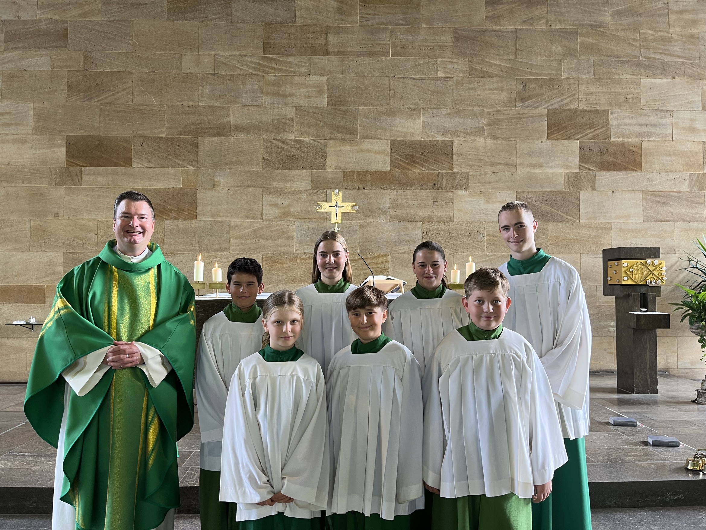 Nach etlichen Wochenenden, in denen sie von den Oberministranten vorbereitet wurden, war es so weit und sie zogen mit ihren Gewändern zusammen mit den Großen in die Kirche ein.