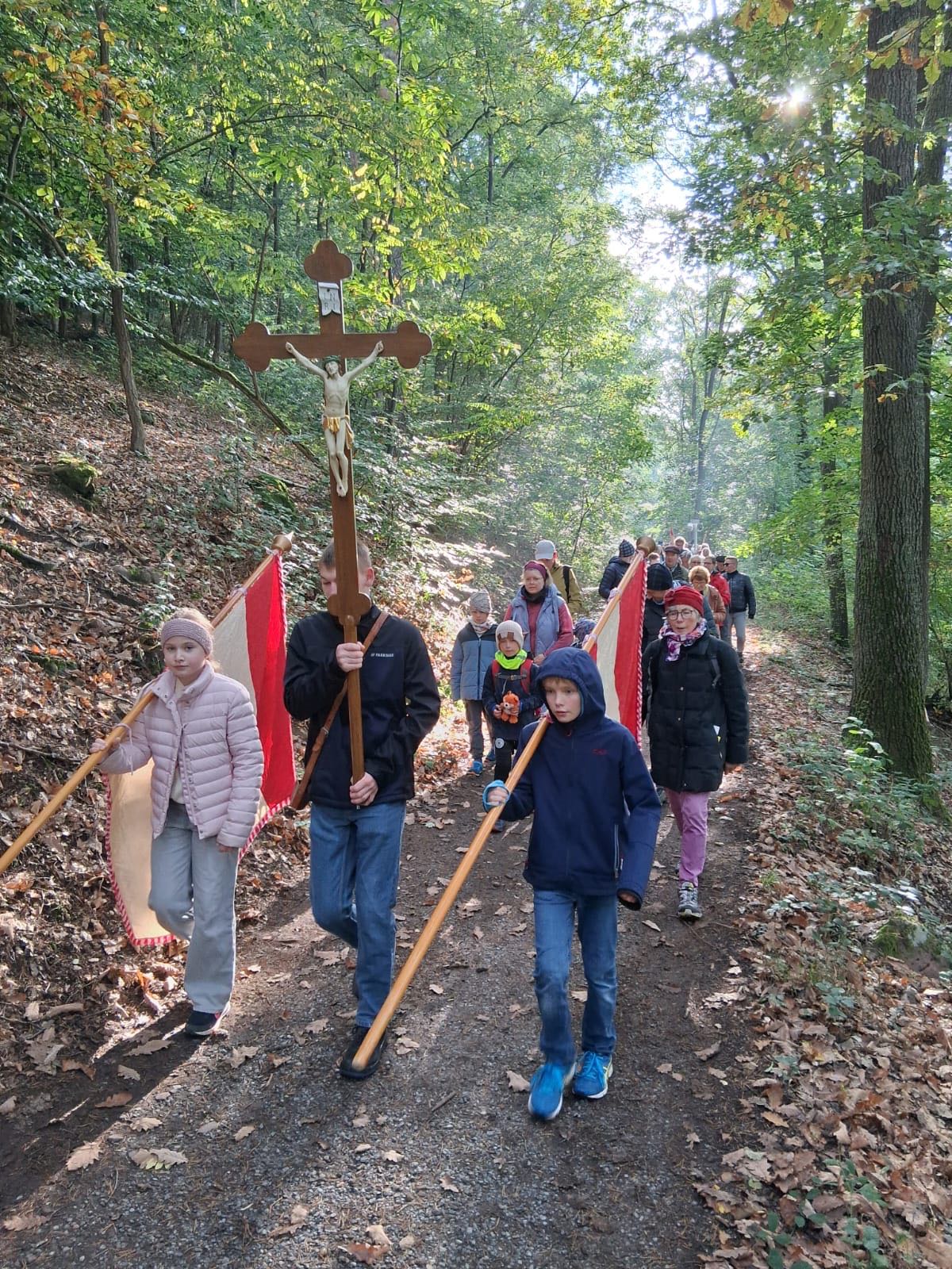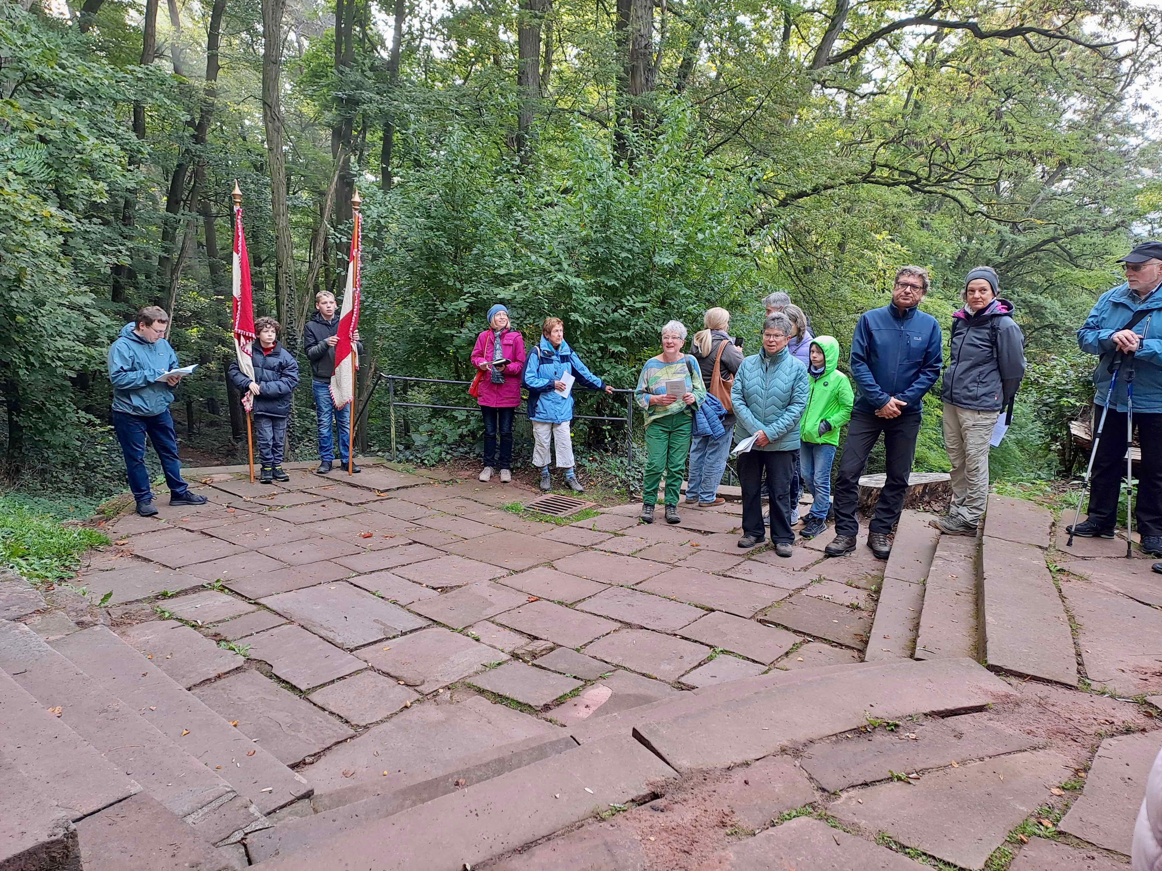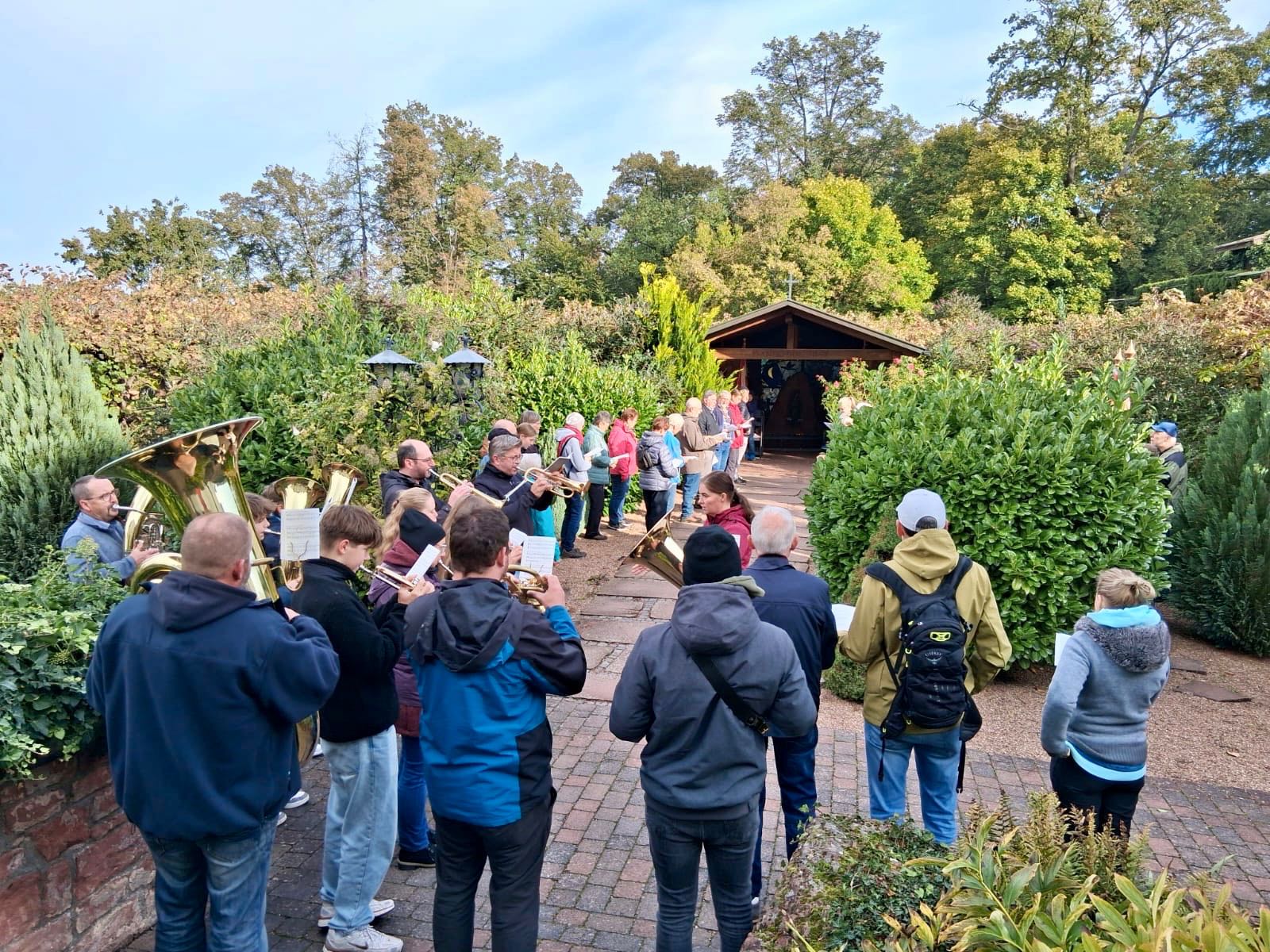 Auf dem Parkplatz am Engelberg kam die Trachtenkapelle Wenschdorf-Monbrunn dazu, welche die musikalische Begleitung an der Station im Franziskusgarten und im Gottesdienst in der Klosterkirche übernahm.