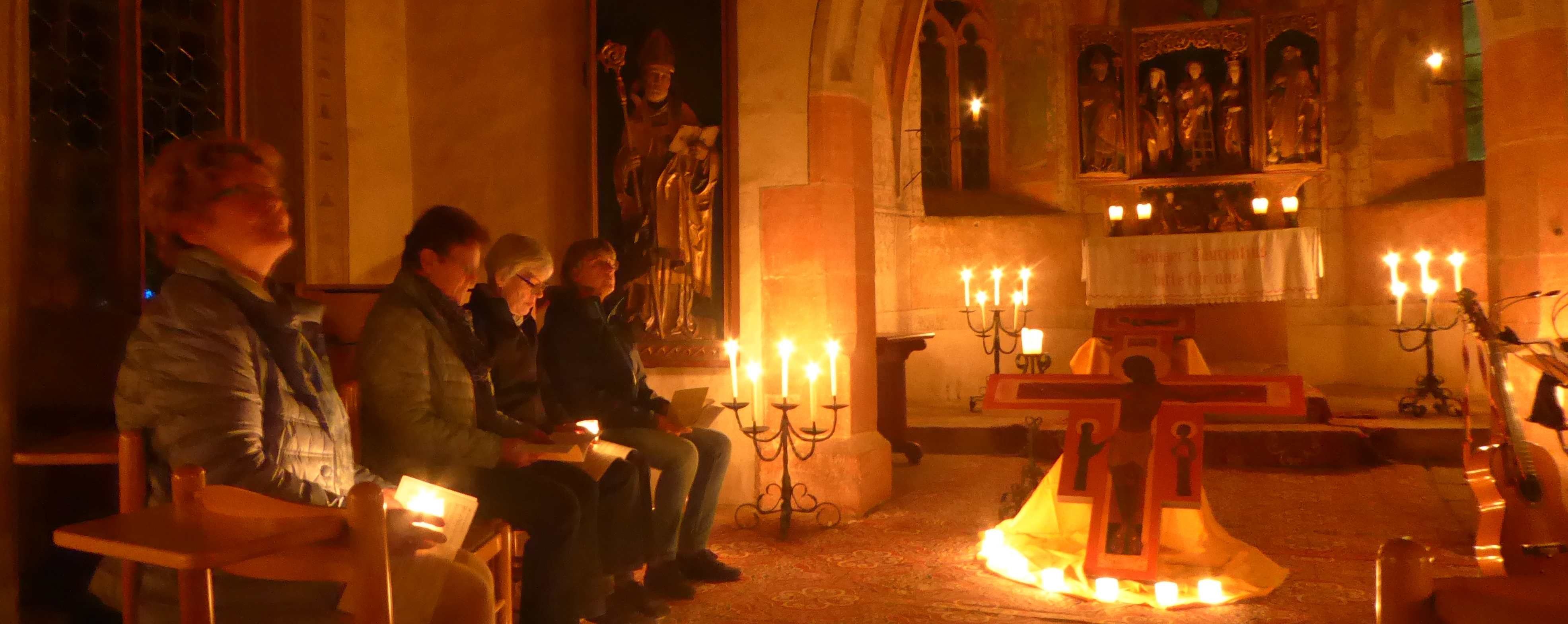 Einmal im Monat, in der Regel am dritten Donnerstag, findet um 20 Uhr in wechselnden evangelischen und katholischen Kirchen ein Taizé-Gebet statt. Im Kerzenschein werden einfache, mediative Lieder gesungen und Texte vorgetragen.